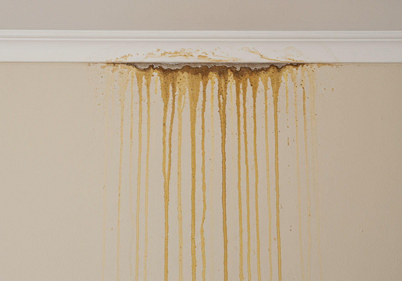 - Water stains that can be a dark yellow almost resembling rust