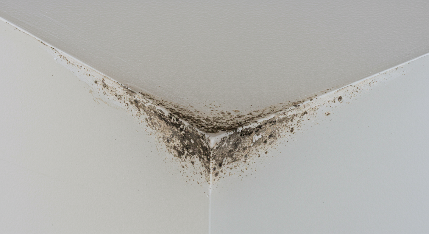 - Mold growth; usually in the corners of walls and ceilings and in humid spaces like basements